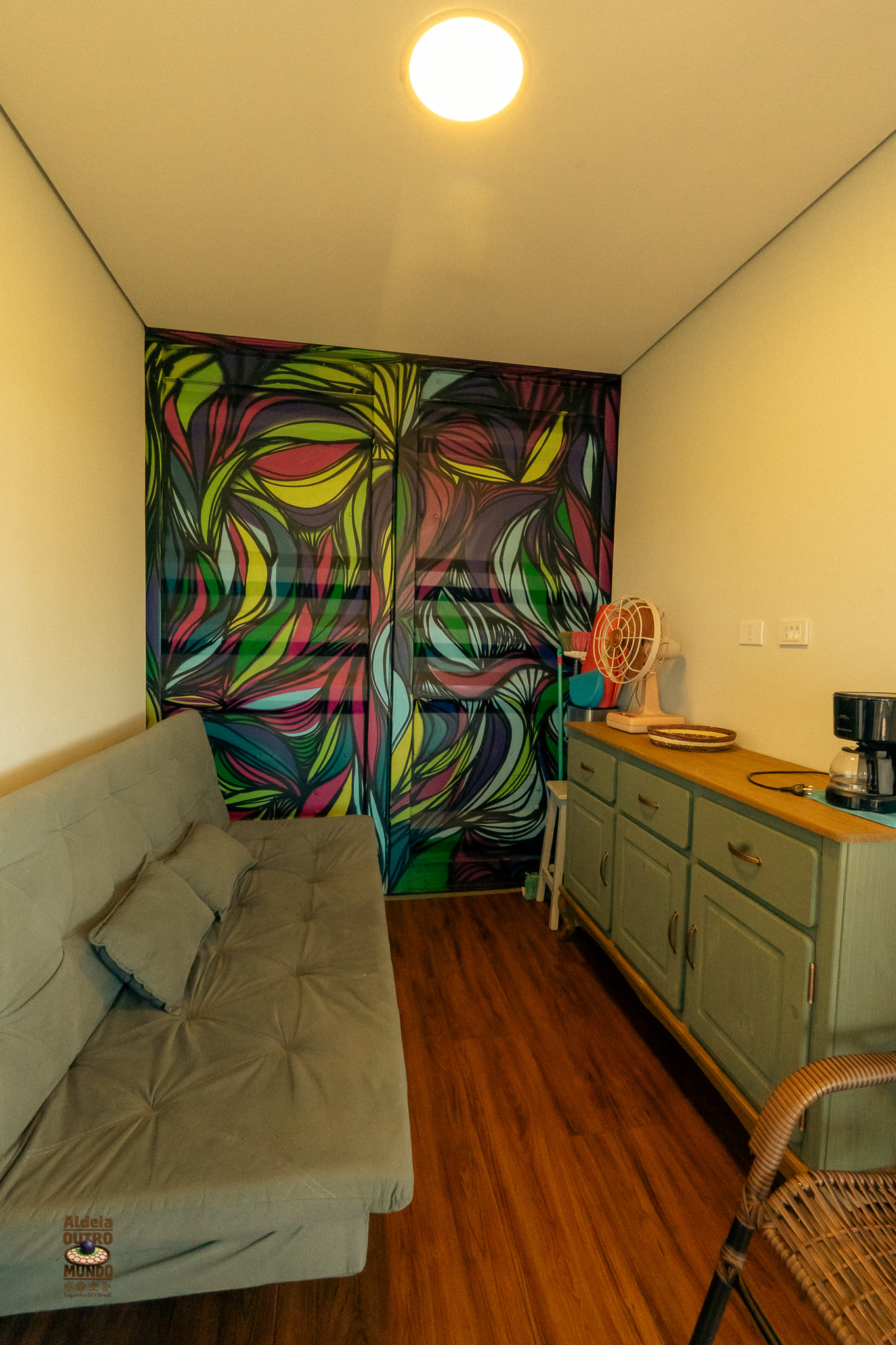 (Casa Container da Aldeia - DENTRO DA ALDEIA, a 200 metros da Pista Principal) Casa para 4 pessoas = cama casal + sofá cama casa